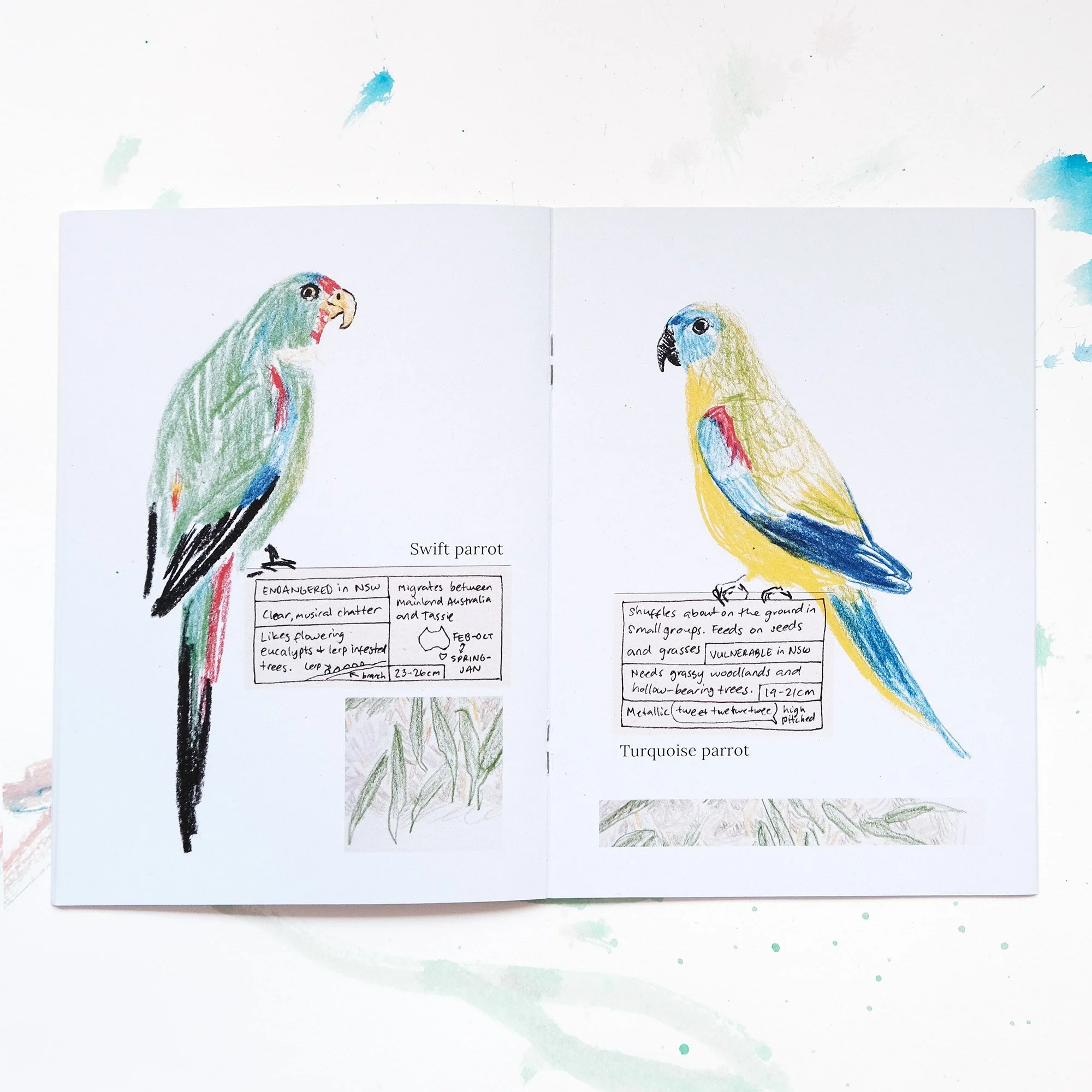 This is a collection of quick bird sketches I was doing. I’d done so many that I combined them into a zine, and then that zine became quite popular. These birds used to be found within the Canterbury-Bankstown LGA (you might see a couple of them still, if you’re skilled, patient, and lucky) but are now vulnerable or threatened within NSW.