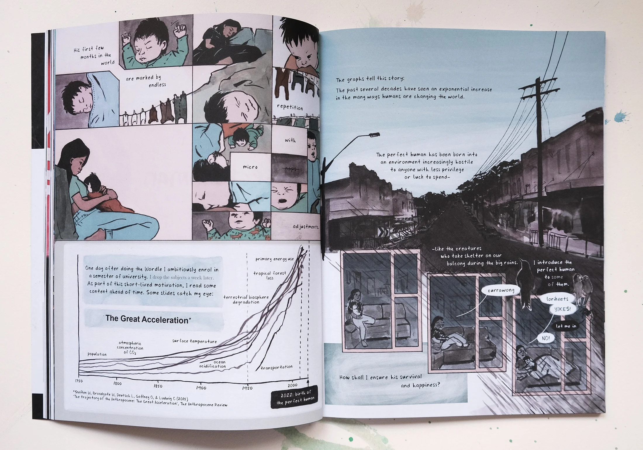 This comic was the joint winner of a silver ledger at the Comic Arts Awards Australia 2024, and was presented as a live reading for Read to Me as part of Climate Action Week 2024.